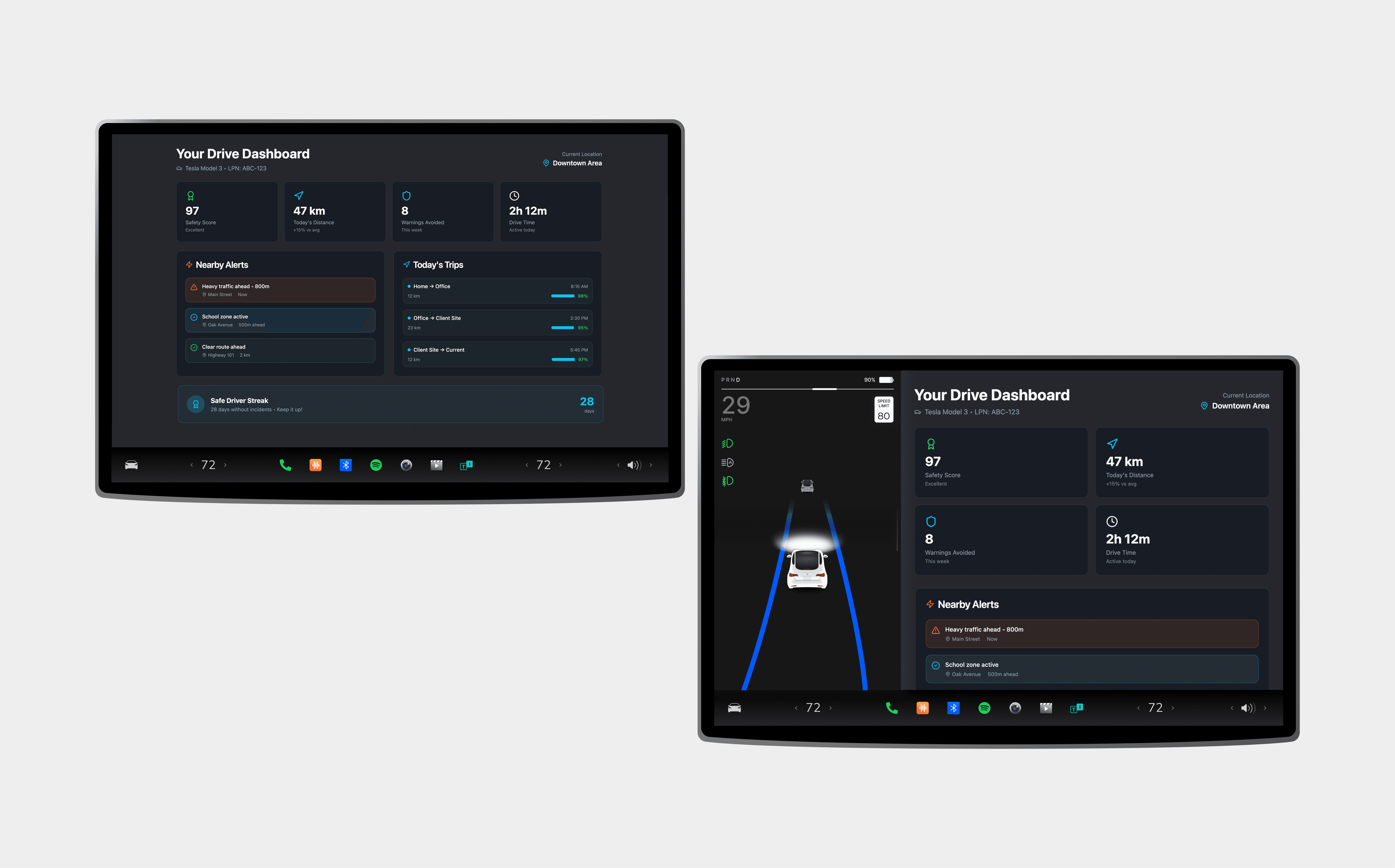A responsive vehicle dashboard UI (Tesla-style interface for drivers)
